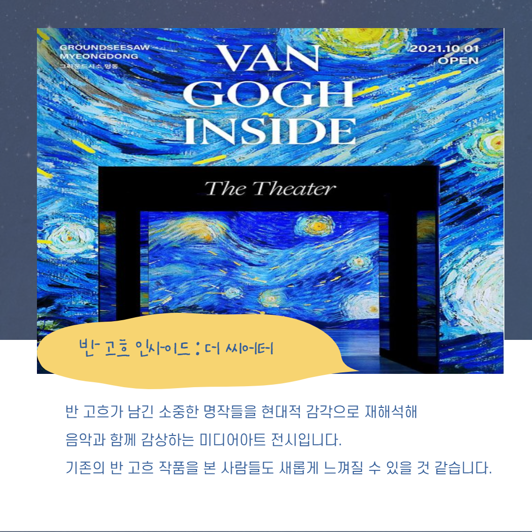 기존의 반 고흐 작품을 본 사람들도 새롭게 느껴질 수 있을 것 같습니다.