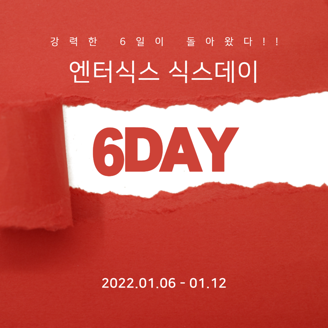 1월 6일부터 1월 12일까지 엔터식스 식스데이를 진행합니다.