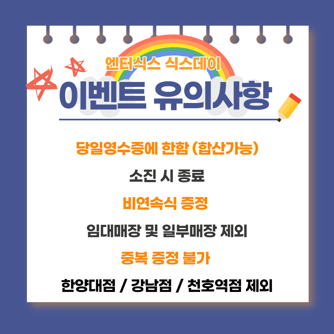 중복 증정이 불가하며 한양대점, 강남점, 천호역점은 제외입니다.